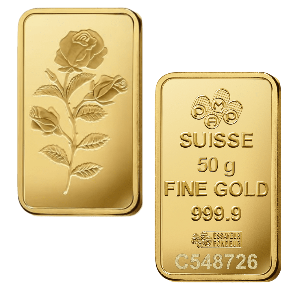 Invest in your wealth today with 50 Gram Gold Bars from Bullion Giant. We have 24 Carat, 99.99% pure gold bars from a variety of LBMA-approved brands including PAMP, Heraeus, and Valcambi Suisse. These 50g Gold Bars make for a perfect investment.