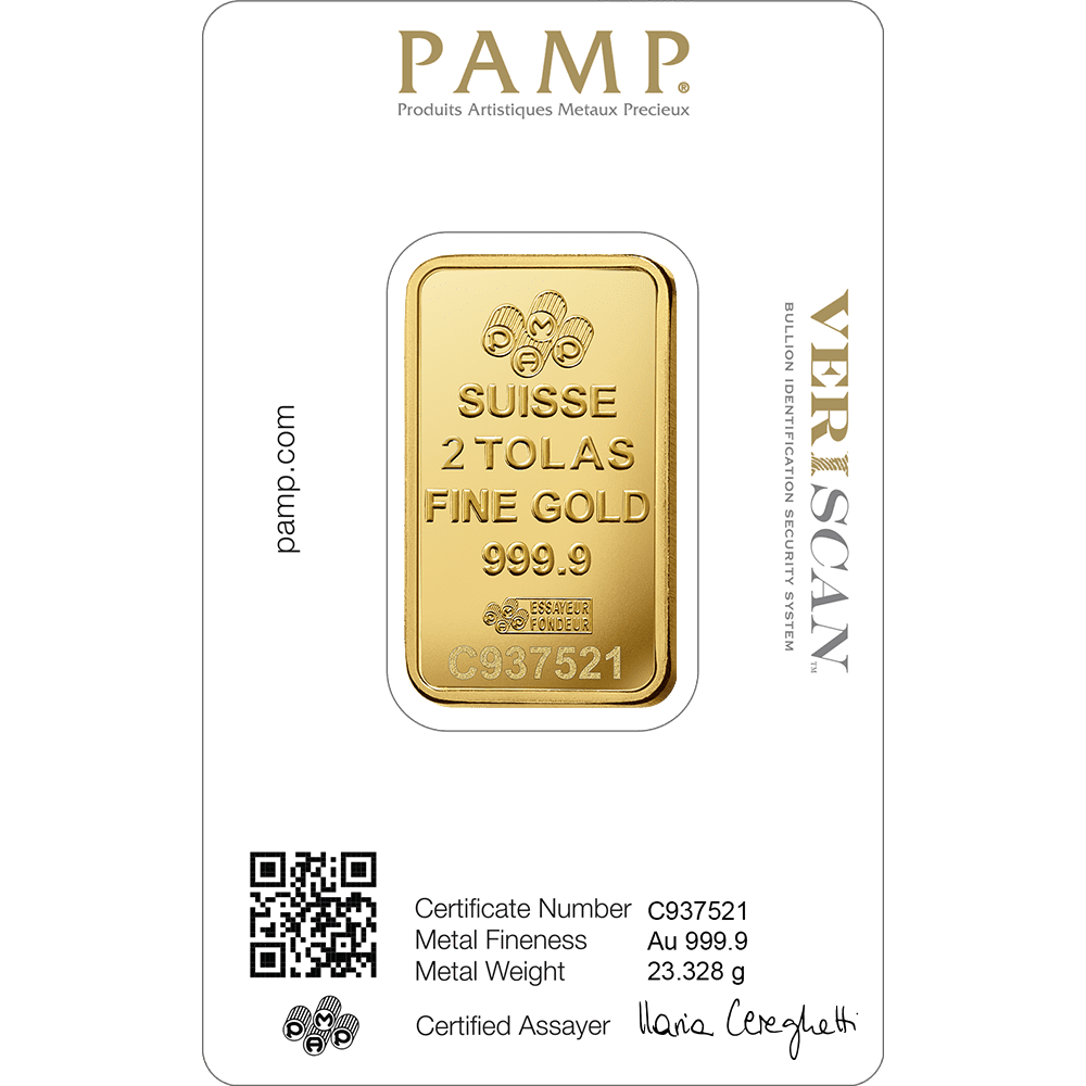 Our 24-carat PAMP Lady Fortuna 2 Tola gold bars are a standout asset from our prestigious range of LBMA-approved gold bars. It’s a perfect investment opportunity for both seasoned investors and collectors in the gold market alike. Emblazoned with a unique serial number, so you can trace the purity of the gold.