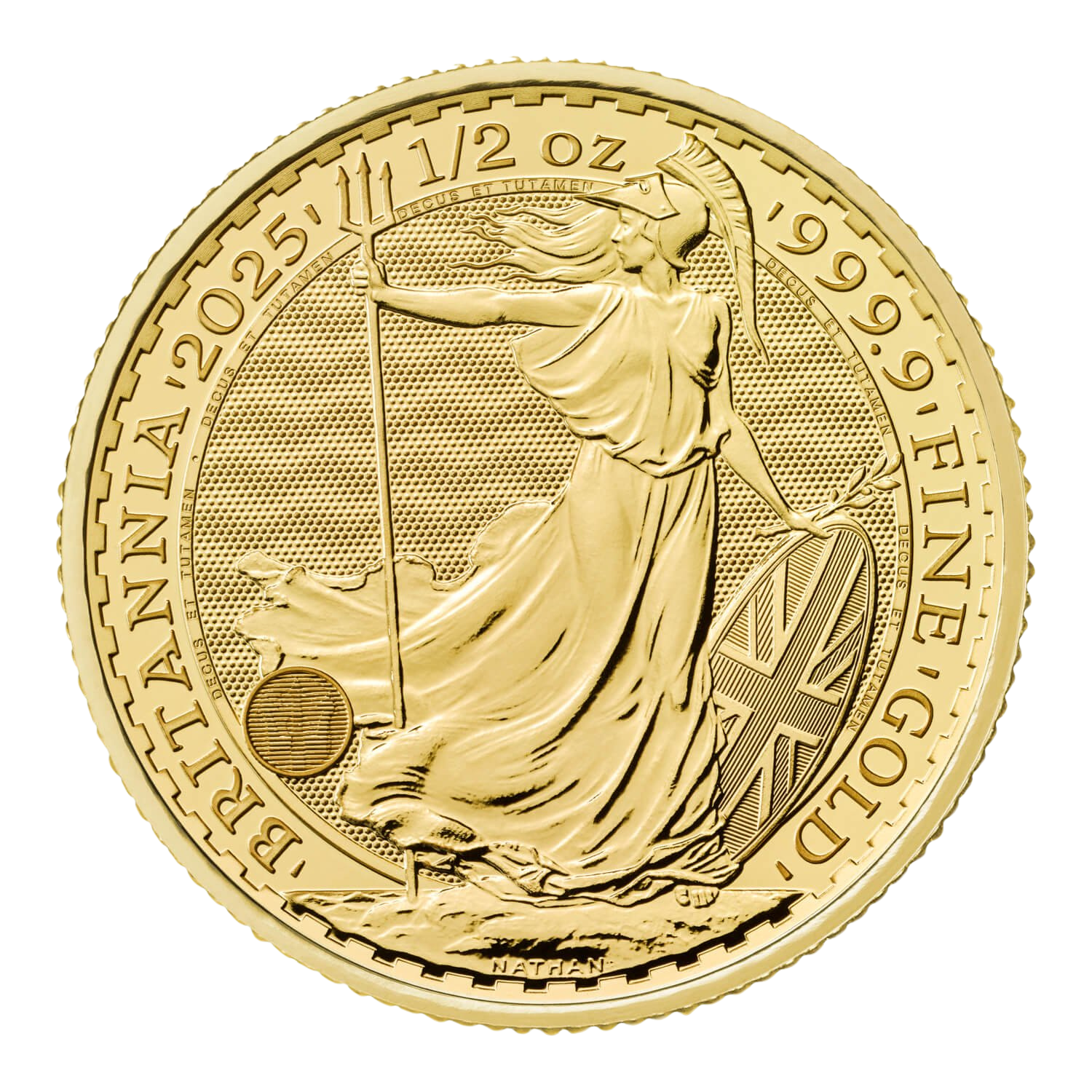Our UK-made 1/2 Half Ounce 2025 Royal Mint Britannia Gold Coins boast 24 Carats, 99.99% purity, and are LBMA approved, making them a great option for first-time investors and collectors.